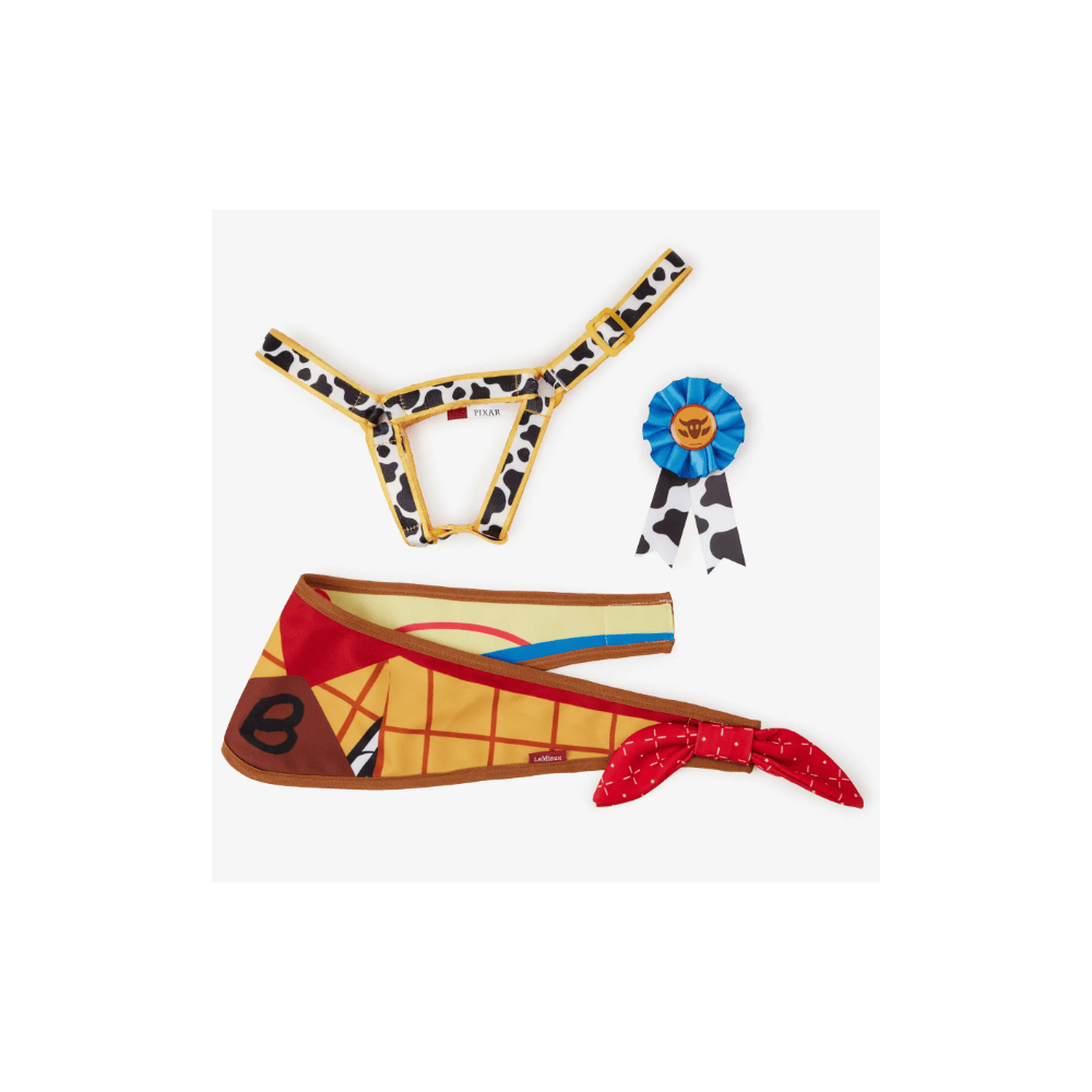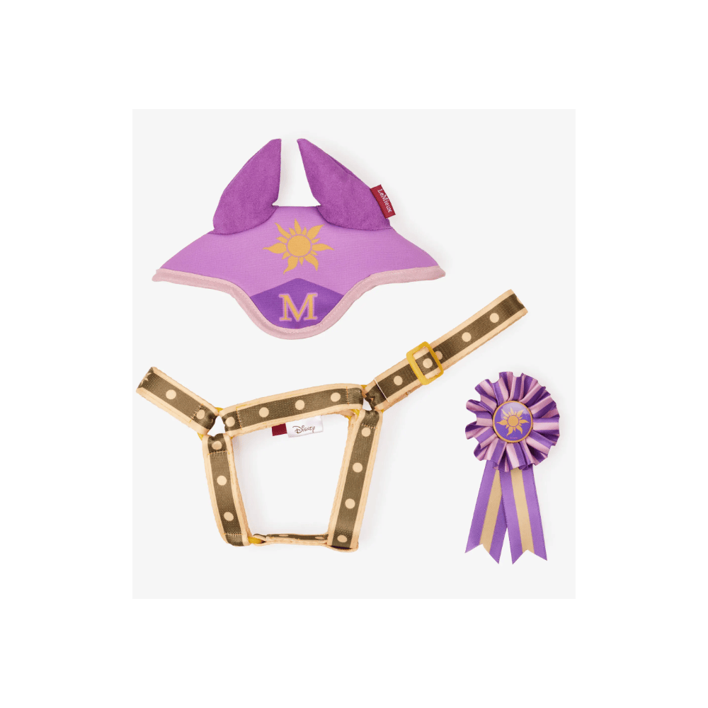 Un licol solide et élégant, un bonnet anti-mouches et une rosace sont les accessoires parfaits pour donner à Maximus son look tiré du film Disney Raiponce.