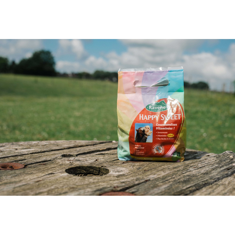Votre cheval mérite la plus belle des récompenses. C’est pour cela que Happy Sweet offre le meilleur des aliments nutritifs sous forme de bonbons savoureux et digestes. Happy Sweet, c’est le plein facile de vitamines, pratique à donner grâce à sa forme longue et cylindrique ! Odeur très agréable, ne s’effrite pas.