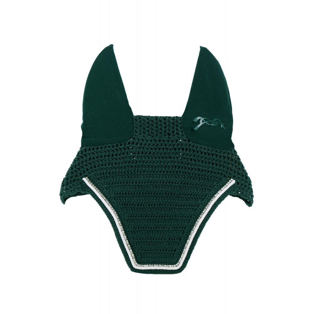 Bonnet pour chevaux Diamant confectionné dans une maille qui se pose parfaitement sur la tête du cheval. Sur la partie qui se pose sur le chanfrein, une tresse ton sur ton et un rang de strass ornent ce bonnet qui s'assortit parfaitement aux tapis de la même collection. Son look brillant s'adapte parfaitement les jours de concours hippiques.