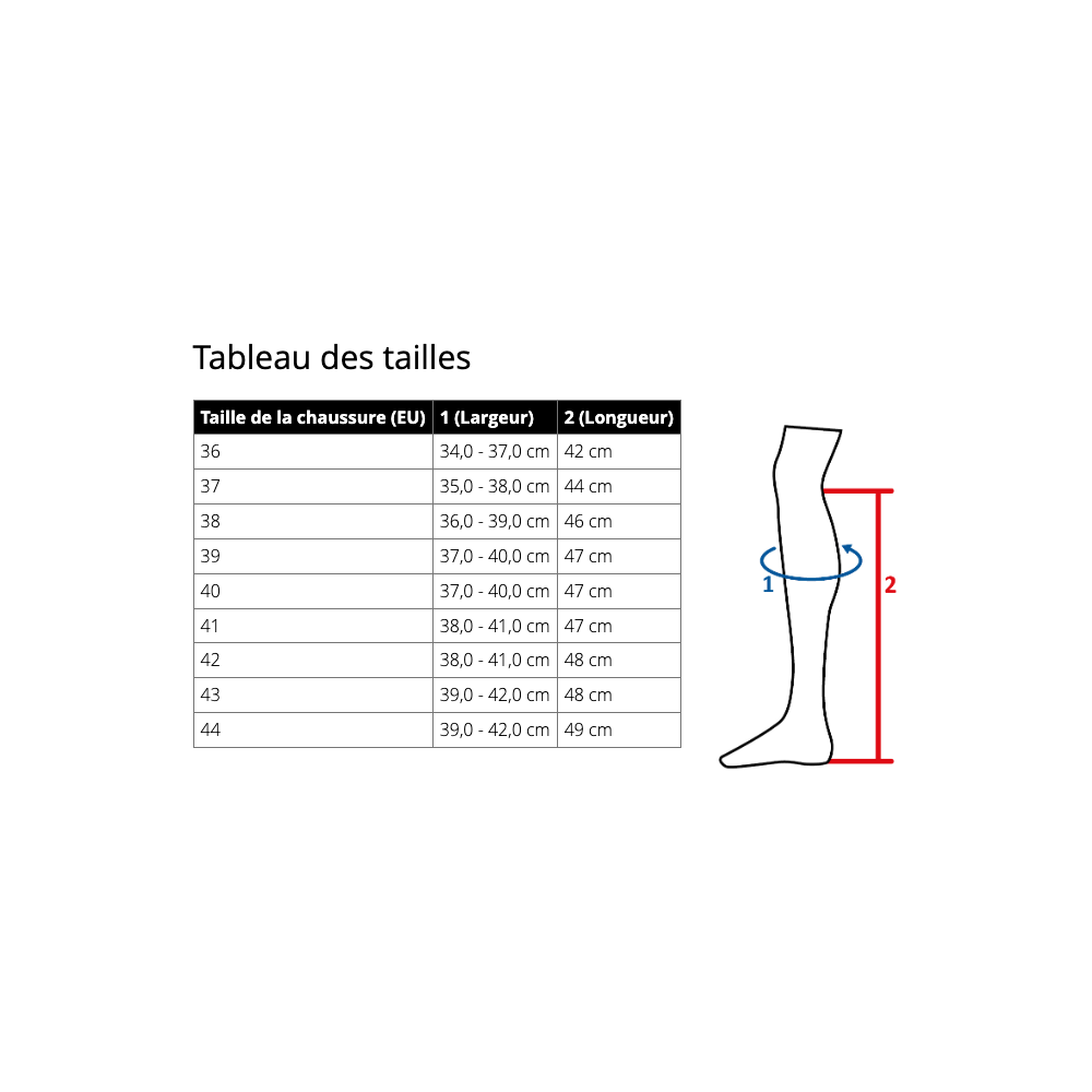 Ce modèle est disponible différentes hauteurs de tige et largeur de mollet, dans d'autres références.