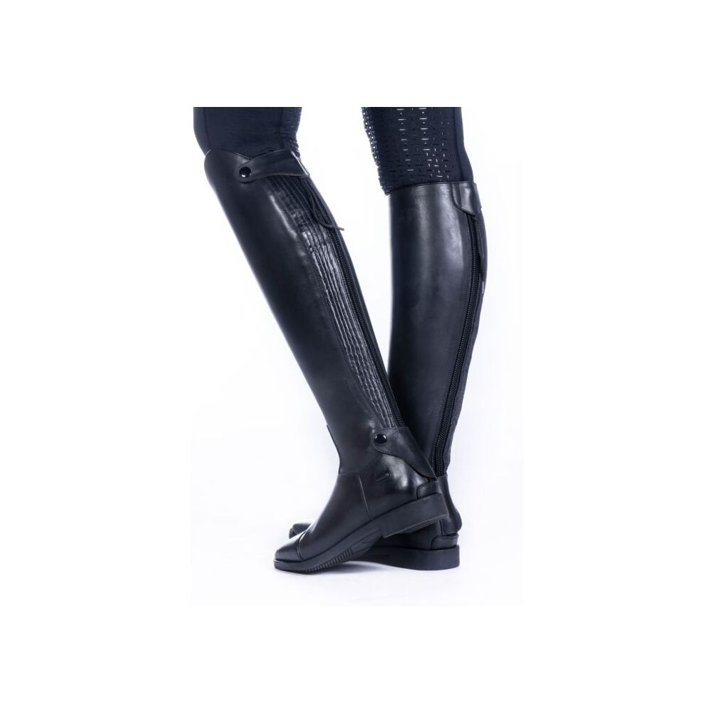 La botte d'équitation classique en cuir Oxford pour femmes et hommes séduit par son design sobre, rehaussé d'une couture décorative sur le haut de la tige. Ces bottes d'équitation en cuir de qualité sont dotées d'une fermeture éclair à l'arrière, d'un cale-éperon et d'un insert élastique à l'arrière qui garantit un ajustement parfait. Le cuir souple et robuste offre un confort optimal.