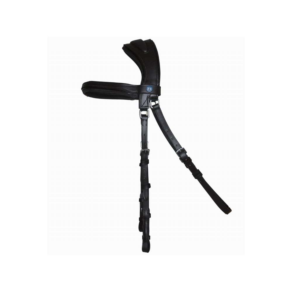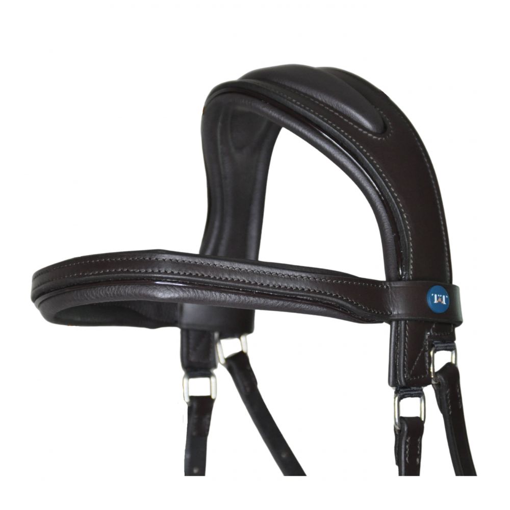 - Têtière anatomique souple, forme large étudiée pour dégager la base des oreilles et supprimer les pressions auriculaires.