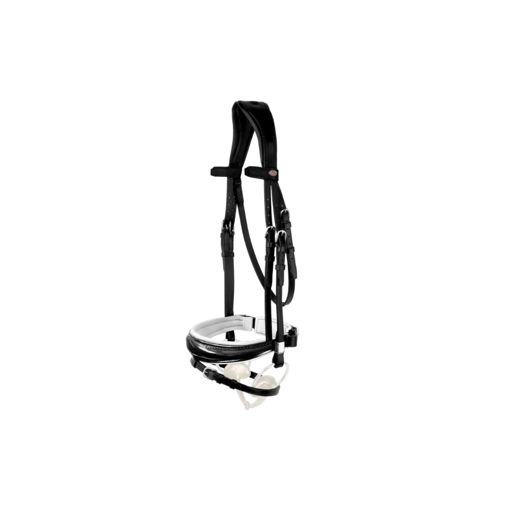 Muserolle combinée : doublée d’un rembourrage moelleux et munie d’un système de noseband amovible (RFS - Removable Flash System) et de fermetures des deux côtés.