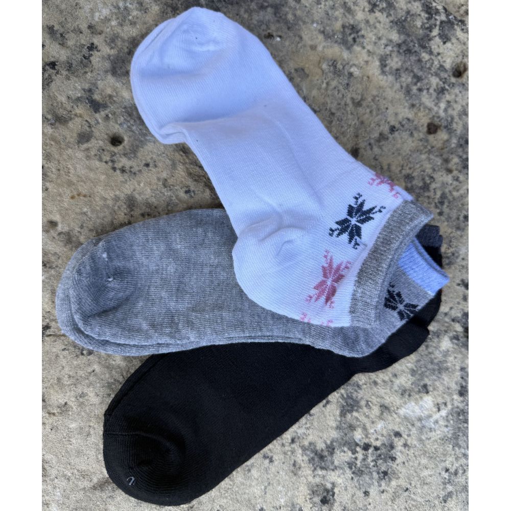 Ce lot de 3 paires de chaussettes basses pour femme est conçu pour combiner simplicité, confort et usage régulier. Grâce à leur coupe "basse", elles restent discrètes lorsque vous portez des chaussures basses ou des baskets, tout en assurant une couverture suffisante pour le pied.