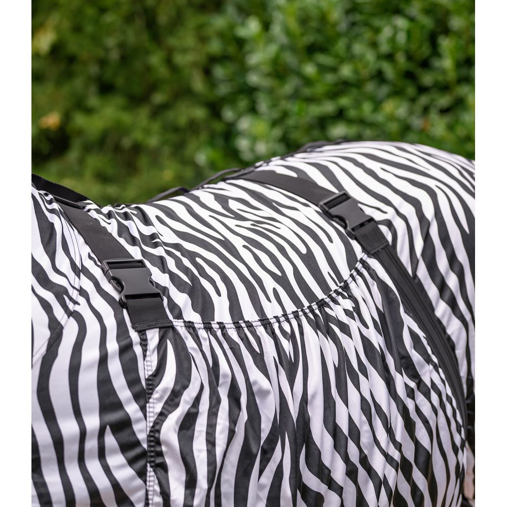 L'imprimé noir et blanc a un effet répulsif sur les insectes et protège ainsi plus efficacement le cheval que les couvertures traditionnelles.