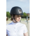 Technischer und eleganter Helm im kalandrierten Hightech-Design, mit Frontbelüftung, die mit Strasssteinen in den Rändern eingelegt ist, und Oberseite mit direktem Lufteinlass, der die Luftzirkulation im Inneren des Helms und damit die Kühlung fördert.