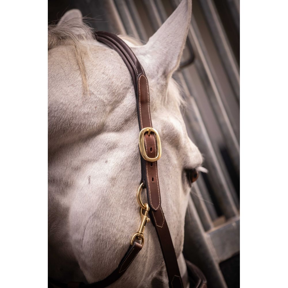 Das Halfter mit drei Karabinern Paddock ist ideal für den täglichen Gebrauch, sowohl im Stall als auch auf Turnieren, und lässt sich perfekt mit der Ledervorführleine Paddock ergänzen.