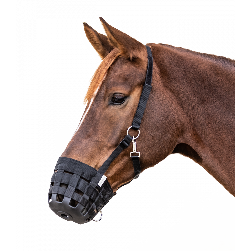 Diese Art Maulkorb wirkt wie ein Weidereduzierer, indem er die Menge an Gras, die das Pferd mit jedem Bissen aufnehmen kann, einschränkt und so zu einer besseren Kontrolle der Futteraufnahme beiträgt. Er wird besonders für Pferde empfohlen, die zu Gewichtszunahme, Hufrehe oder Stoffwechselstörungen neigen.