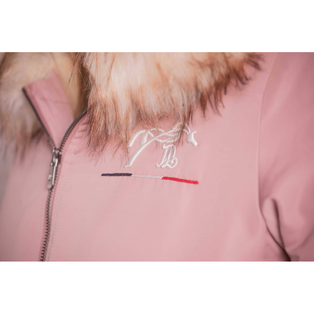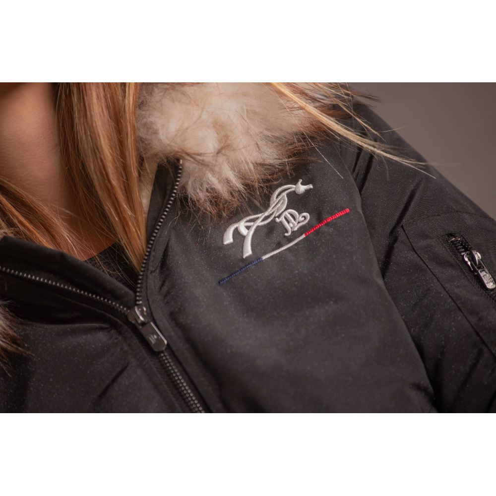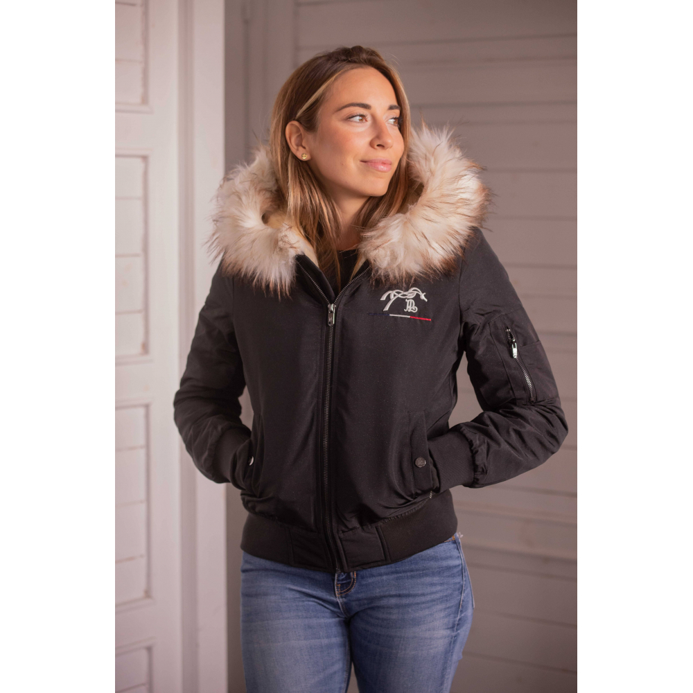 Sie wird mit einem Reißverschluss geschlossen und hat eine feste Kapuze mit Kunstpelz.