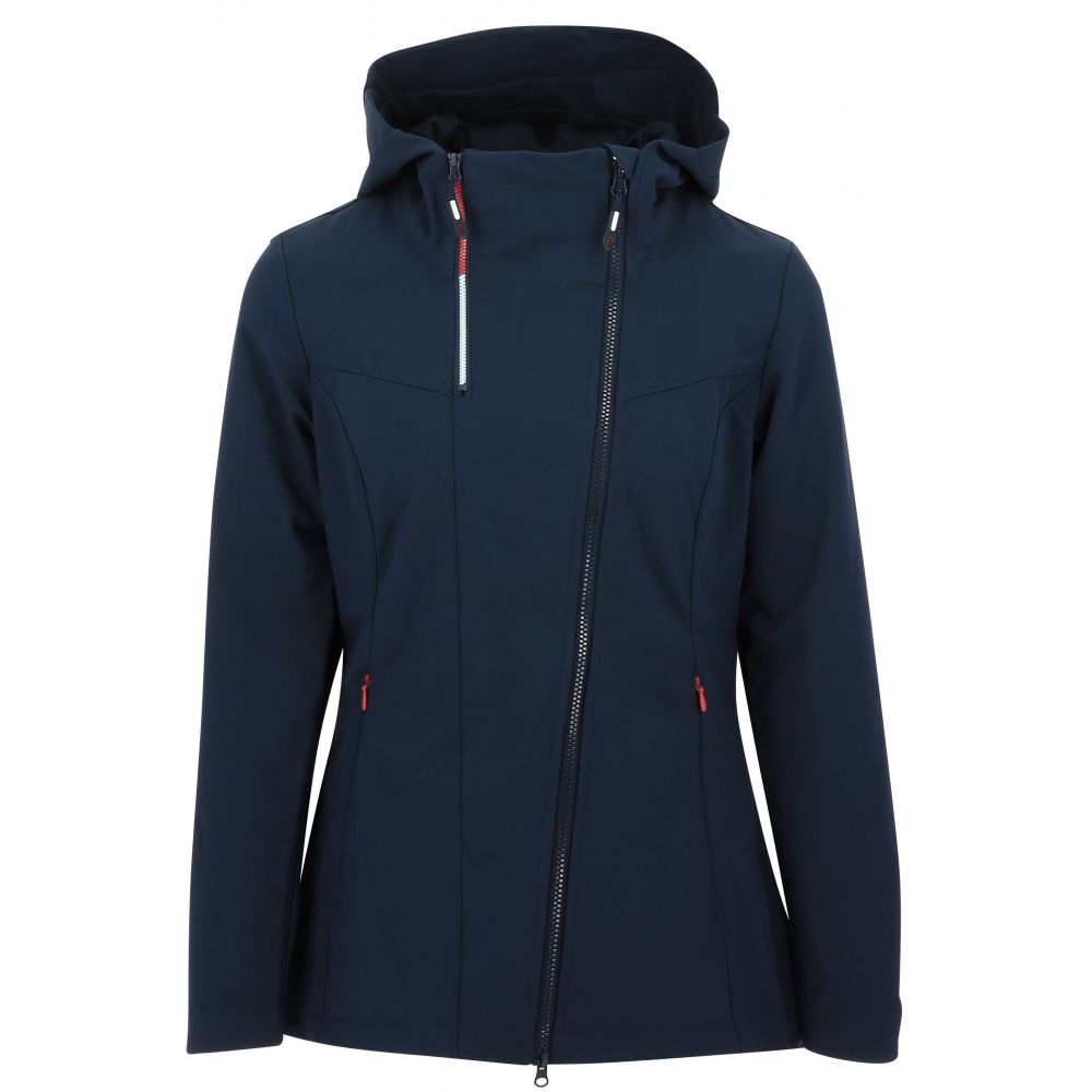Mittellange Softshelljacke mit Kapuze, die wasserabweisend und winddicht ist.