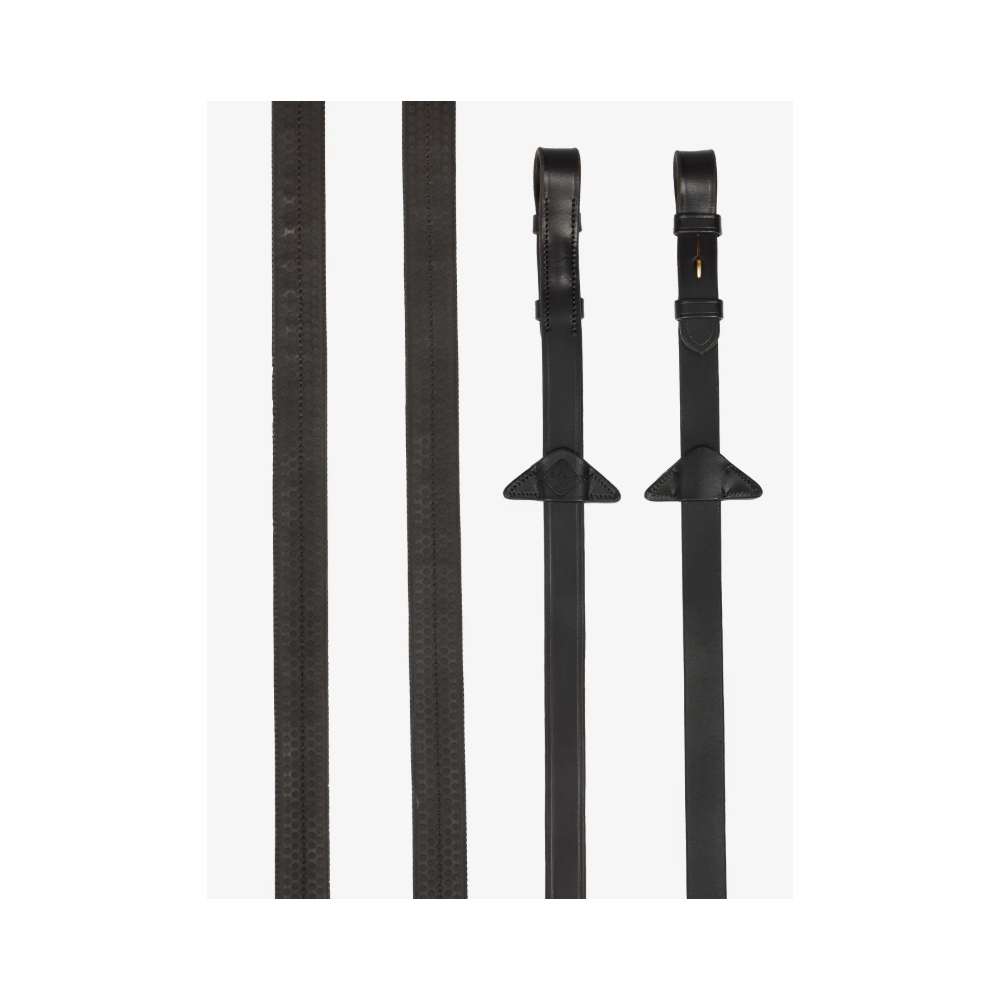 Die Gummizügel LeMieux sind praktische, leicht haftende Zügel, die für die Hände aller Reiter geeignet sind. Rutschfeste Textur für besseren Grip und Nylonfutter, um Dehnungen zu vermeiden.