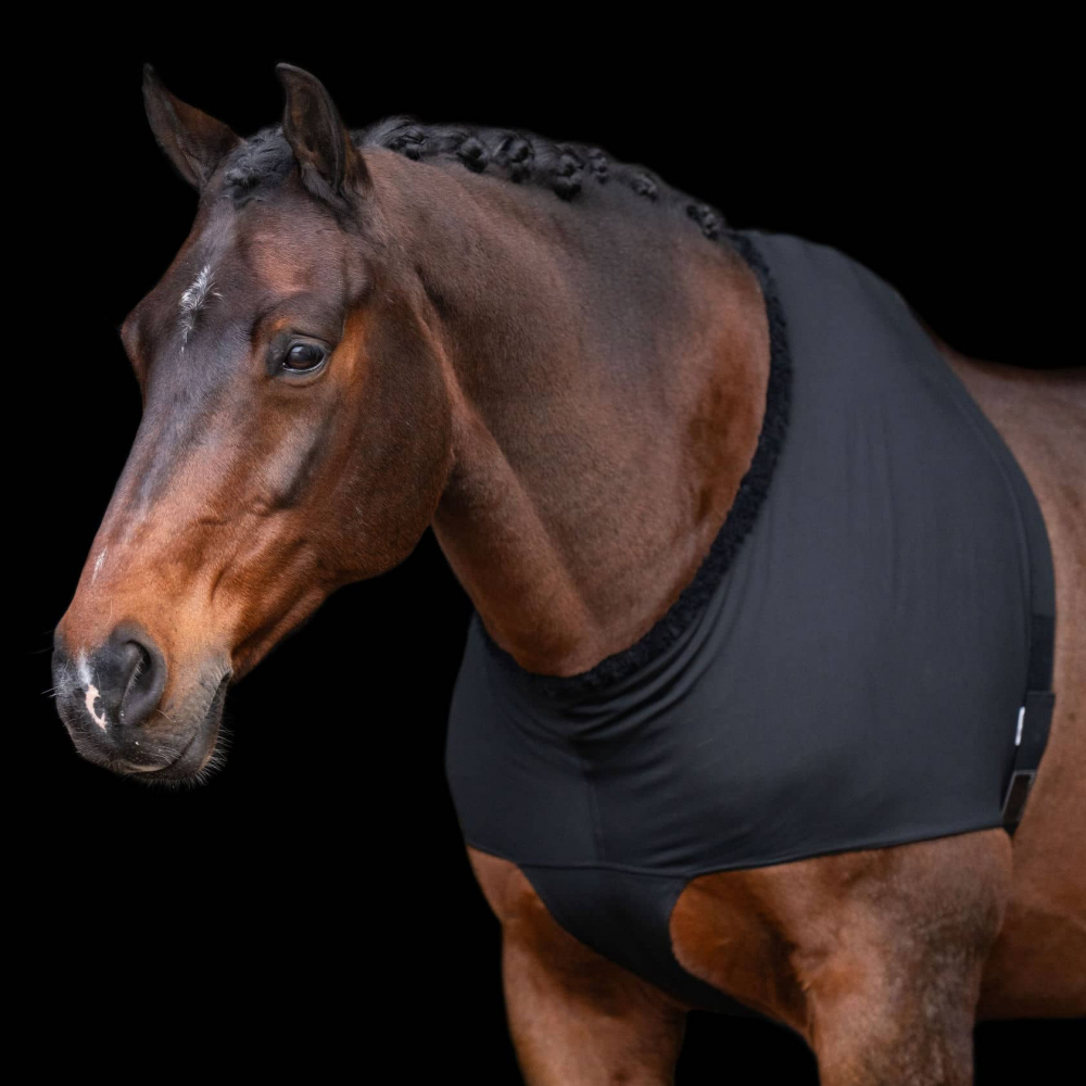 Dieser Brust- und Schulterschutz wurde entwickelt, um Irritationen und Reibungen durch Decken an den empfindlichen Bereichen des Pferdes zu verhindern. Mit einem Innenfutter aus weichem Teddy fügt er eine weiche Polsterung hinzu, die den Komfort deutlich erhöht, besonders wenn die Decke im Brust- oder Schulterbereich scheuert.