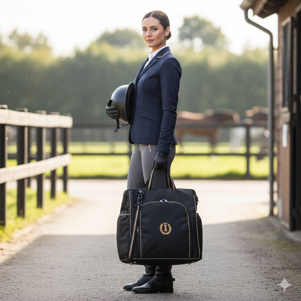 Die Tasche Classic Daily von Imperial Riding vereint raffinierten Stil mit hoher Funktionalität. Sie wurde entwickelt, um Reiter täglich zu begleiten, und bietet ein großzügiges Fassungsvermögen, um Helme, Handschuhe, Bürsten, Outfits und Zubehör unterzubringen. Praktisch und elegant ist sie perfekt für Turnierausflüge oder den regelmäßigen Transport zwischen Stall und Haus.