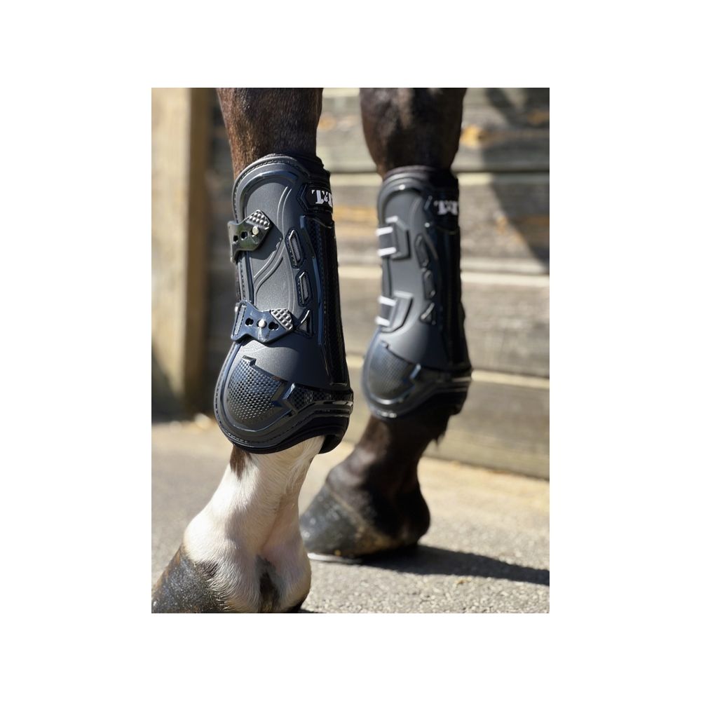 Die Außenschale besteht aus Super-TPU, einem Material, das aufgrund seiner hervorragenden Stoßdämpfung ausgewählt wurde und gleichzeitig flexibel in der Biegung bleibt. Diese Flexibilität ermöglicht es dem Pferd, seine natürliche Bewegungsfreiheit zu bewahren, insbesondere bei der Kniebeugung dank des optimierten hinteren Ausschnitts.