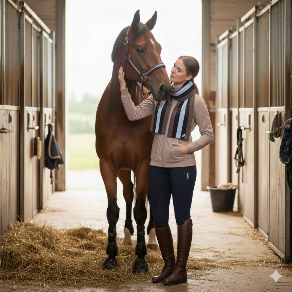 Son design soigné et élégant s’adapte parfaitement à l’univers équestre : Elle est déclinée en coloris sobres qui se marient aisément à vos tenues d’équitation. Cette écharpe est idéale pour les sorties hivernales, les déplacements à l’écurie ou les moments de repos entre les séances.