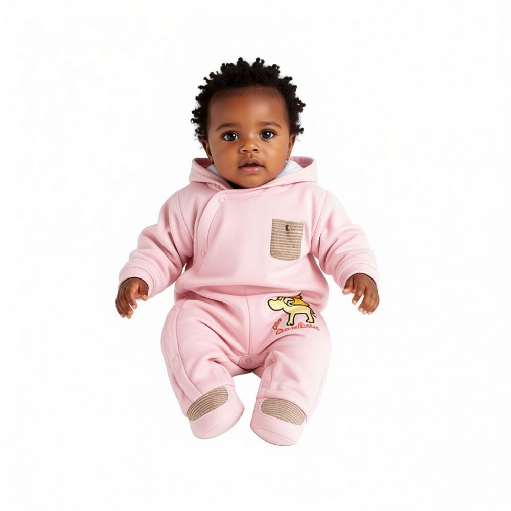 Polivalente, este mono de forro polar con pies y capucha integrados puede utilizarse como sobrepijama o para proteger al bebé del frío cuando está fuera de casa.