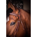 La elegancia y la sobriedad de nuestra brida US. Sin florituras, este modelo va directamente a lo esencial con su bonita piel color avellana. Los cómodos refuerzos acolchados contrastan bajo la cabezada, la frontalera y la muserola, combinados con una muserola desmontable. Limitan la presión ejercida sobre el hocico y la nuca. La brida US Noisette se vende sola, sin riendas, a elegir entre el modelo trenzado y el modelo de caucho.