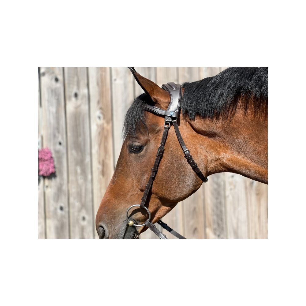Esta versión sin muserola va aún más lejos en términos de comodidad al liberar todas las zonas sensibles de la cabeza del caballo: hocico, maseteros, nervios faciales, articulaciones de la mandíbula y vías respiratorias superiores. El resultado es un caballo más relajado, mejor conectado y más compenetrado.