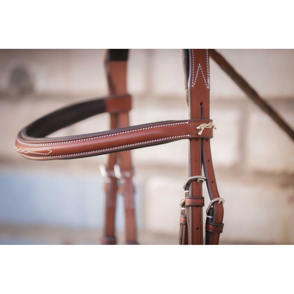 Se trata de una brida elegante y sobria que puede utilizarse tanto para el trabajo diario en la cuadra como para las competiciones ecuestres.