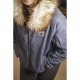Tiene una capucha con forro polar y un bonito ribete de piel sintética.