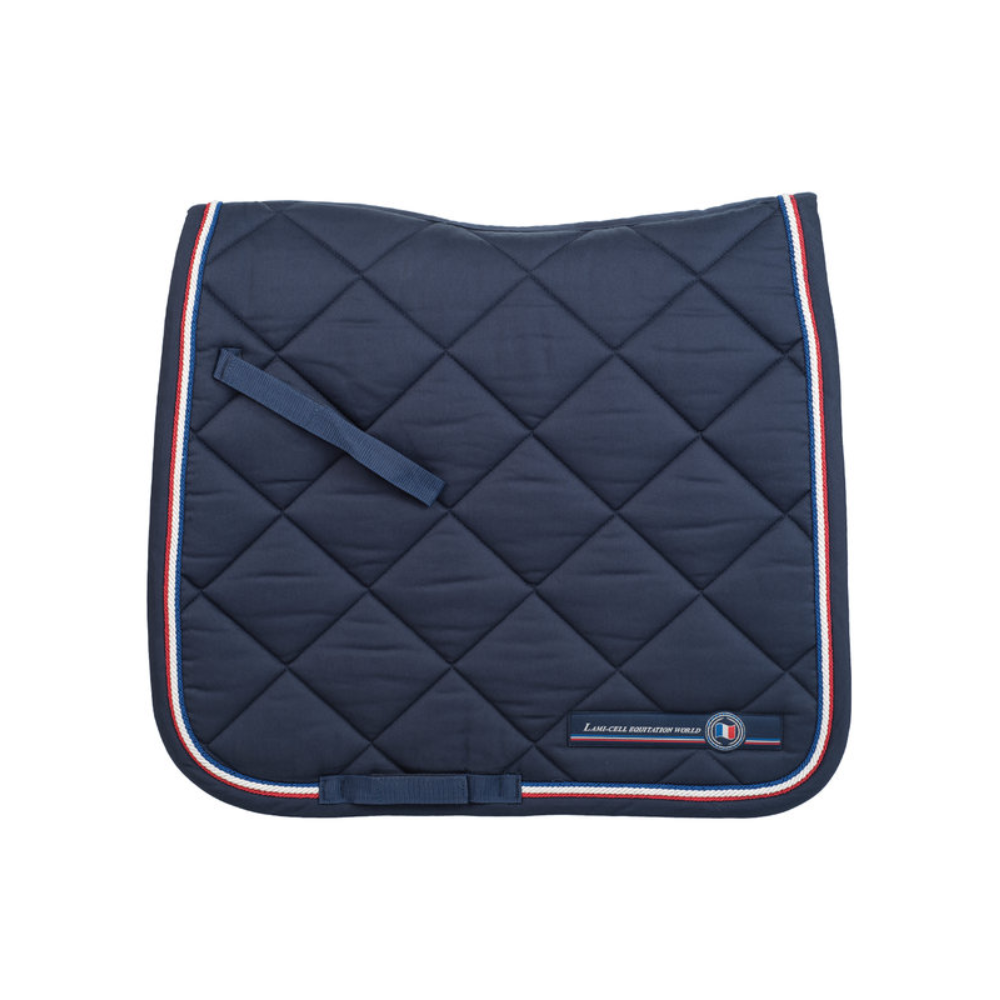 Acolchado con 360 gramos de relleno de fibra, el sudadero de doma Lami-Cell Bandera Francesa optimiza la distribución de los puntos de presión en el dorso del caballo.