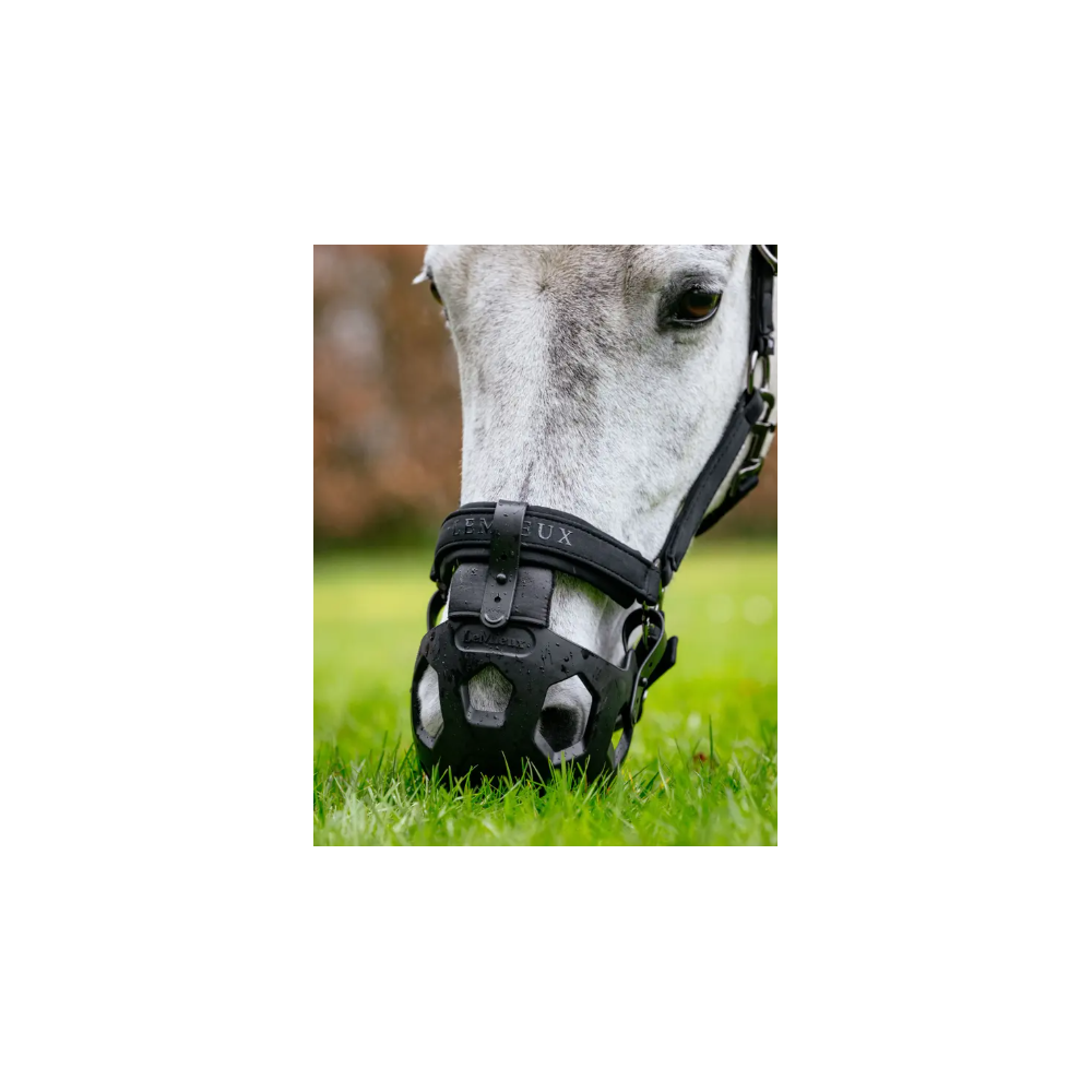 Fruto de la investigación y la reinvención, nuestro ingenioso bozal limita el pastoreo excesivo al tiempo que permite al caballo beber y respirar con facilidad. Compatible con la mayoría de los cabestros estándar, cuenta con fuertes cierres ajustables integrados para adaptarse a todas las formas y tamaños.