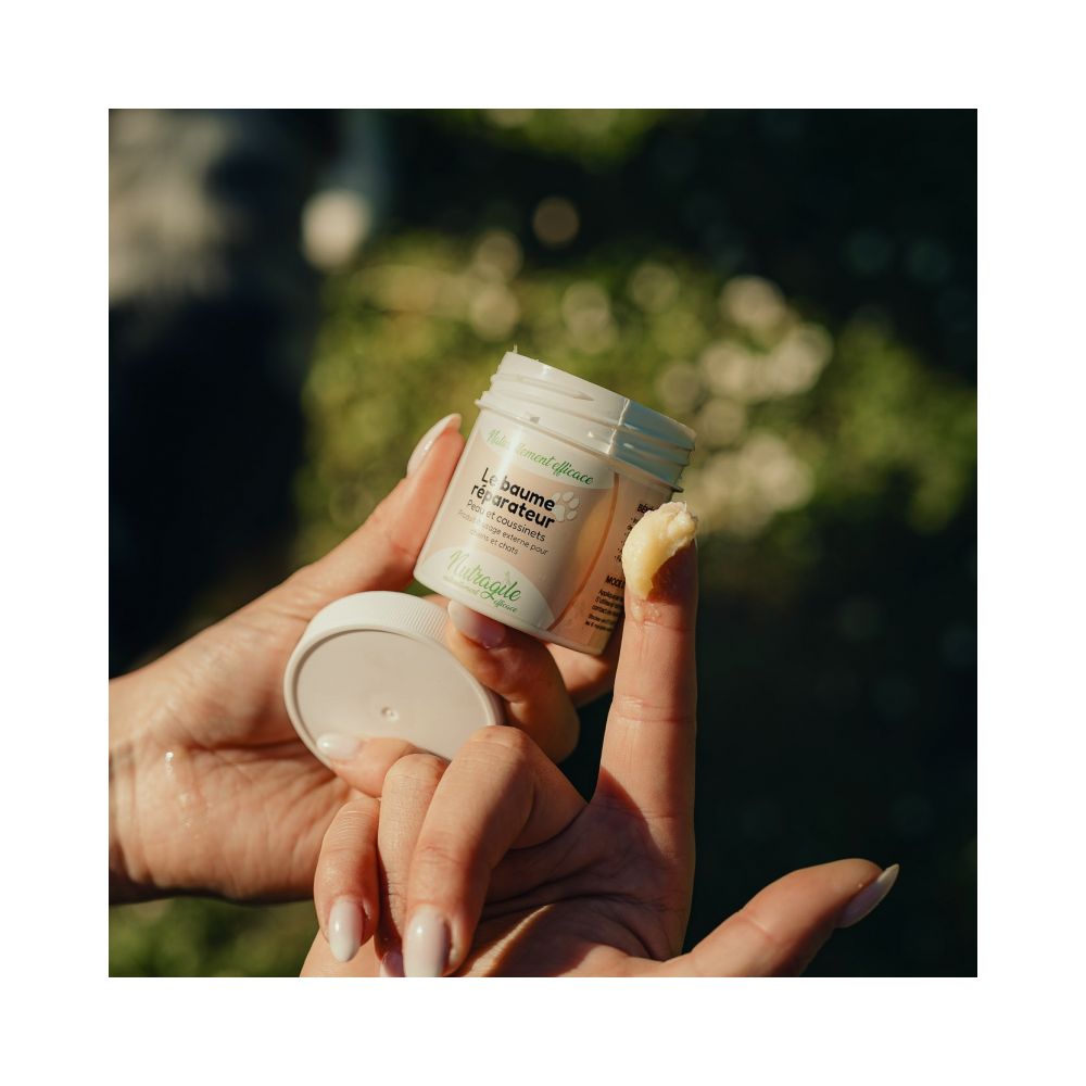 El Bálsamo Reparador está formulado con una sinergia de activos naturales eficaces, reconocidos por sus propiedades nutritivas, calmantes y reparadoras. Protege, purifica y favorece la regeneración de la piel y de las almohadillas de las patas.