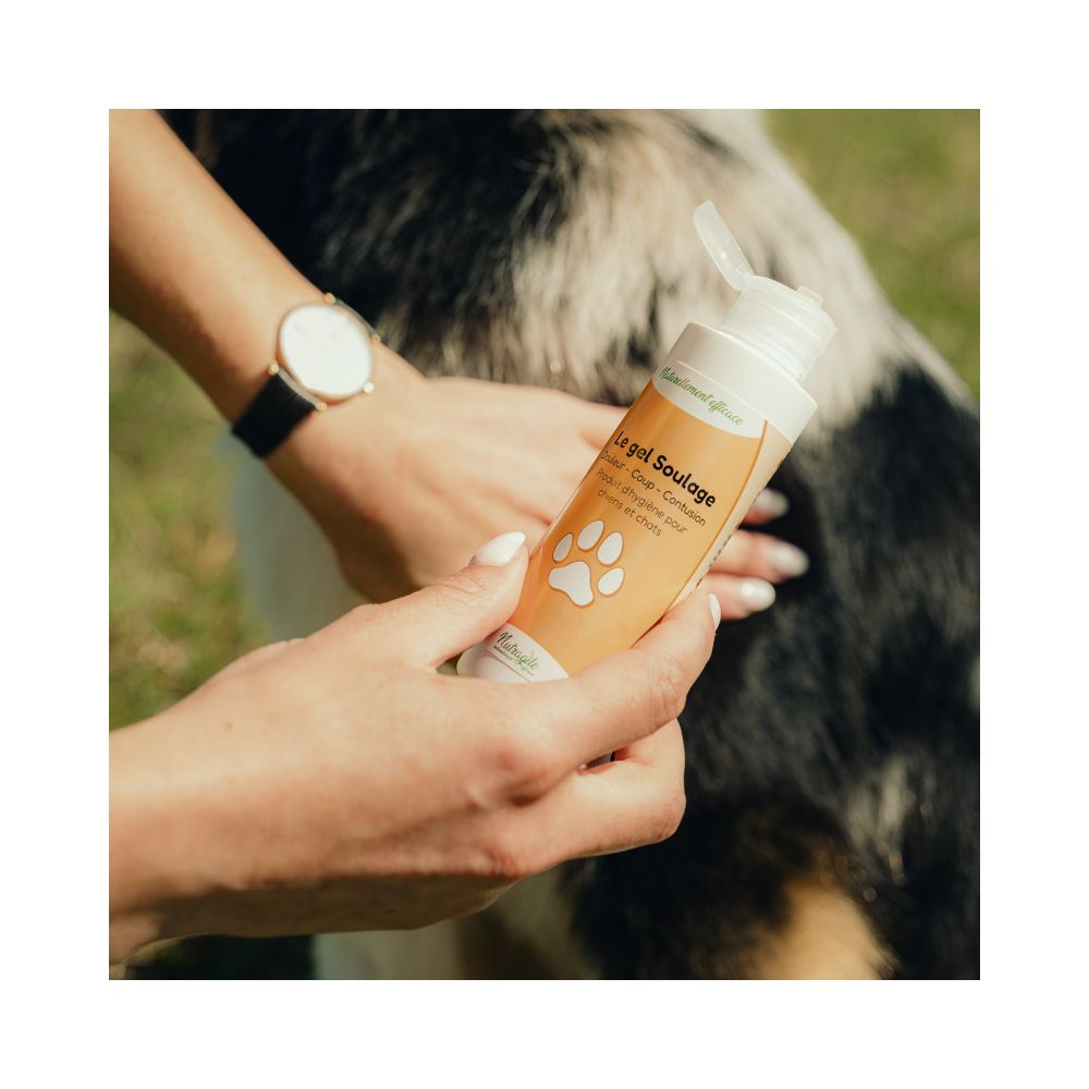 Gel Soulage está indicado para calmar zonas sensibles y acompañar el confort muscular y articular en perros y gatos.