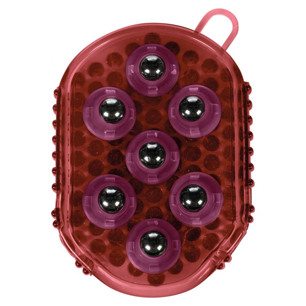 Descubra el guante de rizo masajeador y relajante, un accesorio versátil en P.V.C. Su cara de rizo con granos ofrece una limpieza profunda mientras que su cara masajeadora está equipada con 7 bolas de acero inoxidable para la máxima sensación de relajación. Ideal para preparar los músculos de su caballo antes del esfuerzo y favorecer la recuperación después del trabajo.