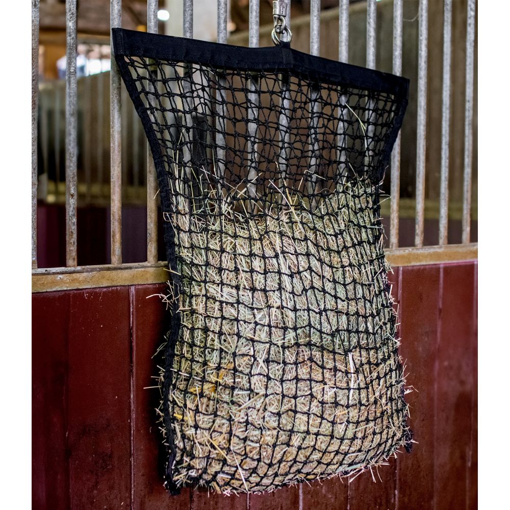 La fermeture à scratch renforcée empêche le sac à foin de s’ouvrir brusquement.