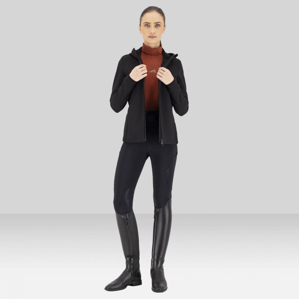 La manche est sublimée par un artwork en caoutchouc, et le col droit arbore un imprimé métallique avec le logo tête de cheval. Un choix raffiné pour les cavalières qui recherchent performance et sophistication.
