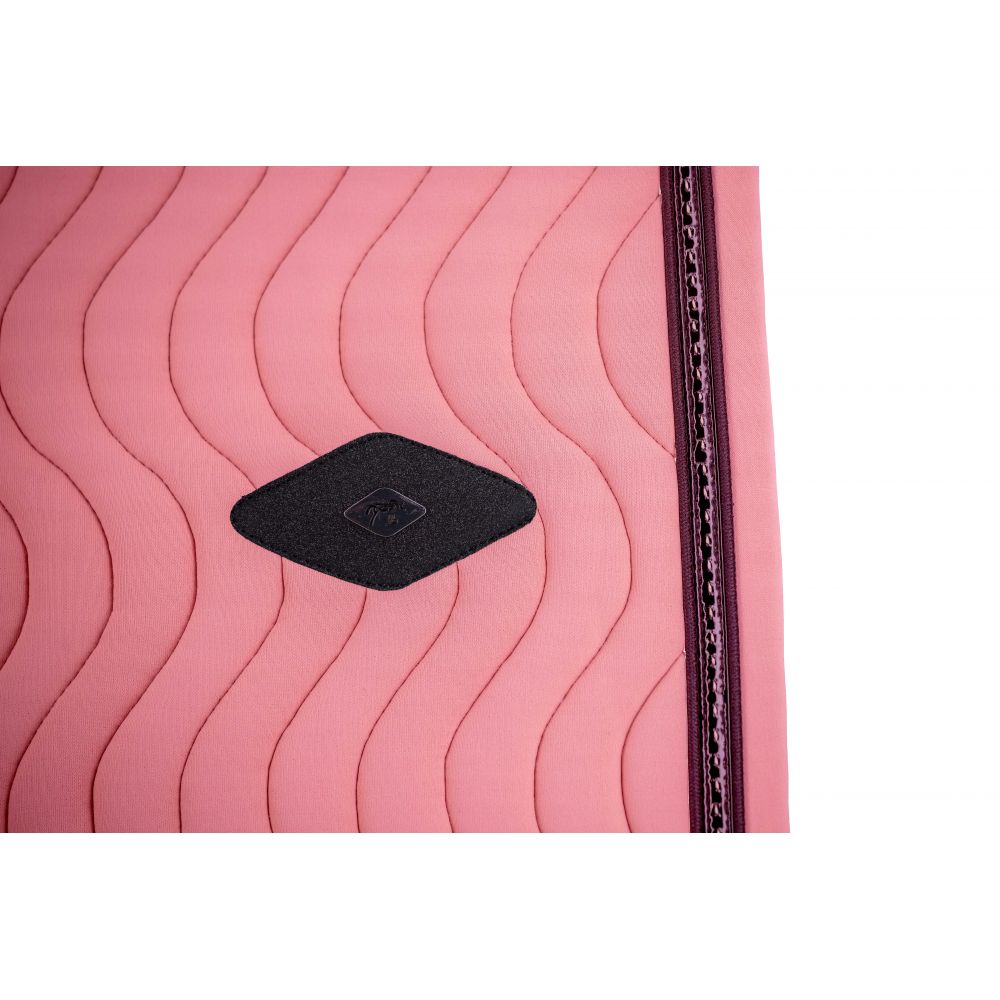Tapis de selle "Swell" au fin matelassage en vague, galonné d'un point sellier verni et doté d'un insert en losange glitter et d'une broderie du logo Pénélope en 3D ton sur ton à l'intérieur. Sa ligne de dos est bien dessiné pour un bon dégarrotage, il a deux passants de sangle et il est idéal pour une utilisation au quotidien ou en concours hippiques.